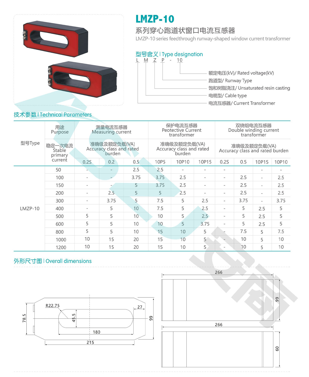 LMZP-10穿心式跑道状窗口电流互感器(又称高精度电流互感器)适用于交流电力系统10kV~35kV供电系统的电能计量,高准确限值保护和电流测量。该型电流互感器为环网柜、开闭所进线电缆的计量和出线高限值保护而设计,可以穿双根或多根电缆,完美解决多路出线问题,可代替高压母排型计量互感器(LZZB系列),产品体积小、计量精度高(0.2S级),属于全工况产品,可在各种环境中运行,属免维护产品可缩小设备空间,降低成本,提高可靠性,应用于Safeplus、SM6、8DH、FB、GA/GE、SS、FIT等全绝缘全密封紧凑型。